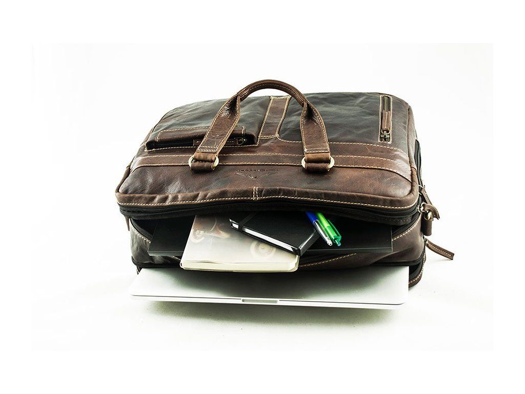 Kožená taška Chiemsee vyniká maximální organizací, praktičností a nadčasovým designem. Je ideální jako pracovní taška na notebook i dokumenty, ale i pro každodenní použití ve městě.