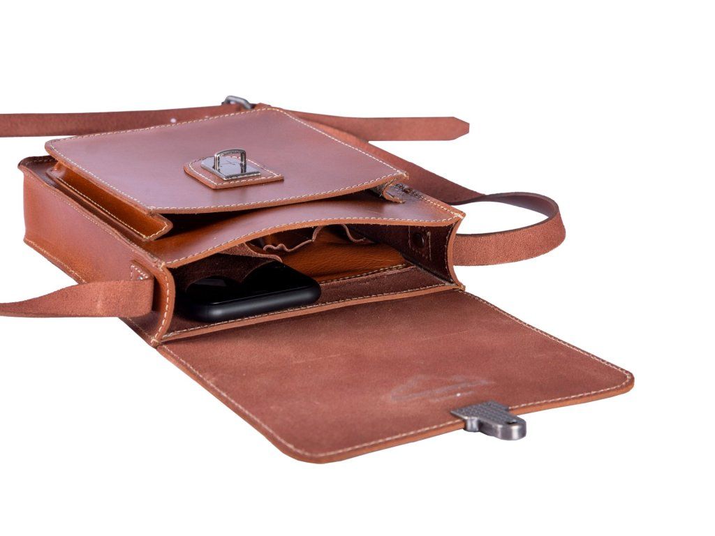 - vnitřní kožená přihrádka na mobil, pera a poznámkový blok