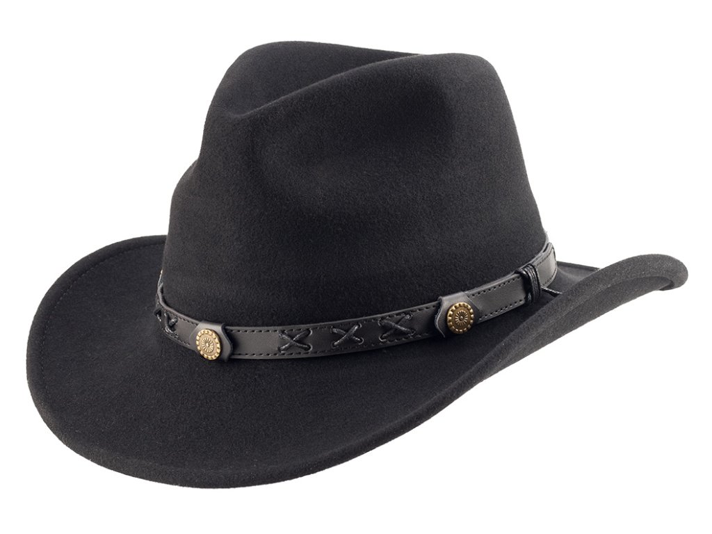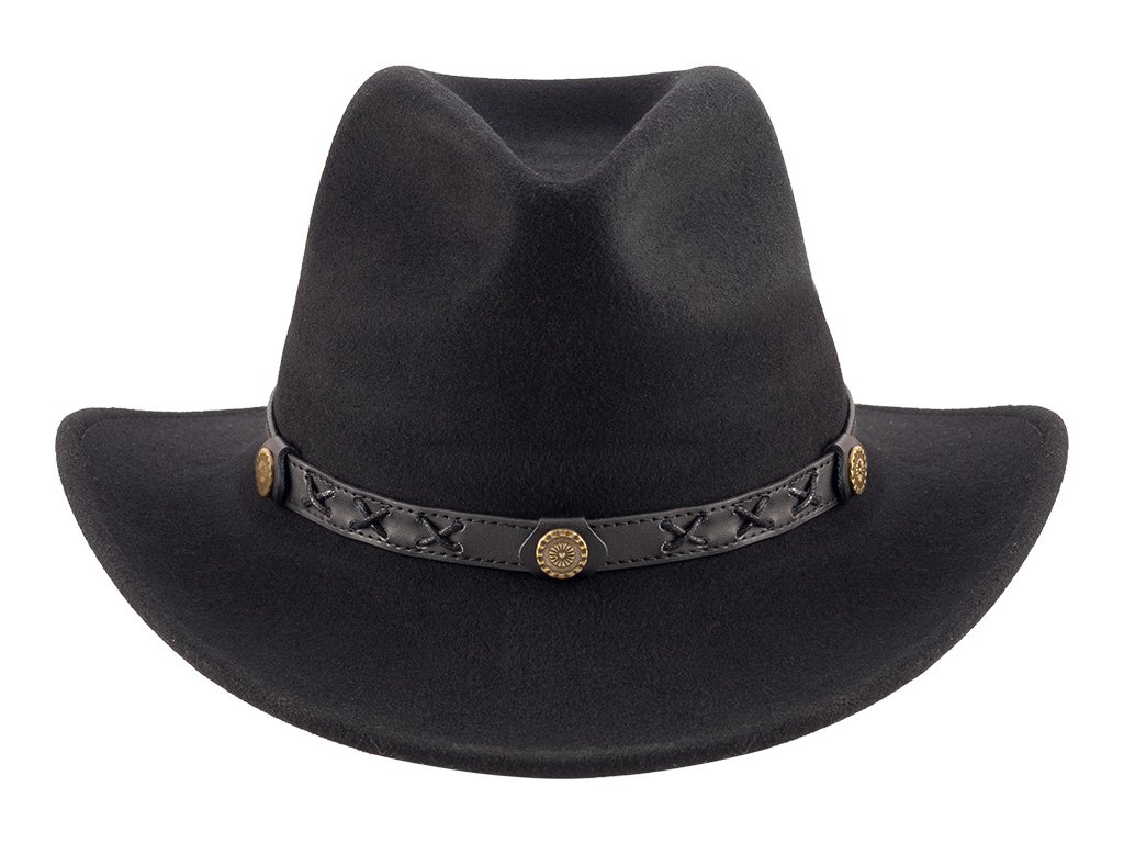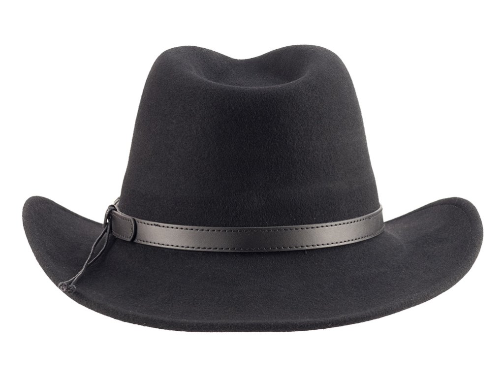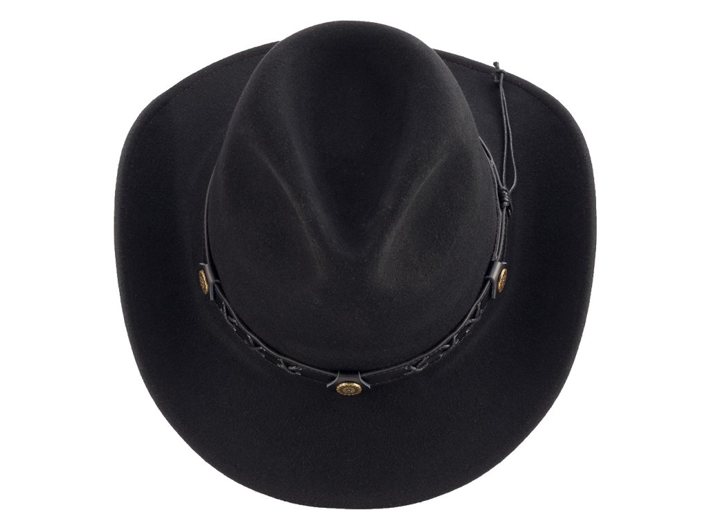 Klasická westernová koruna spolu s jemně zakřivenou krempou dodávají klobouku výrazný vzhled a autentický charakter.