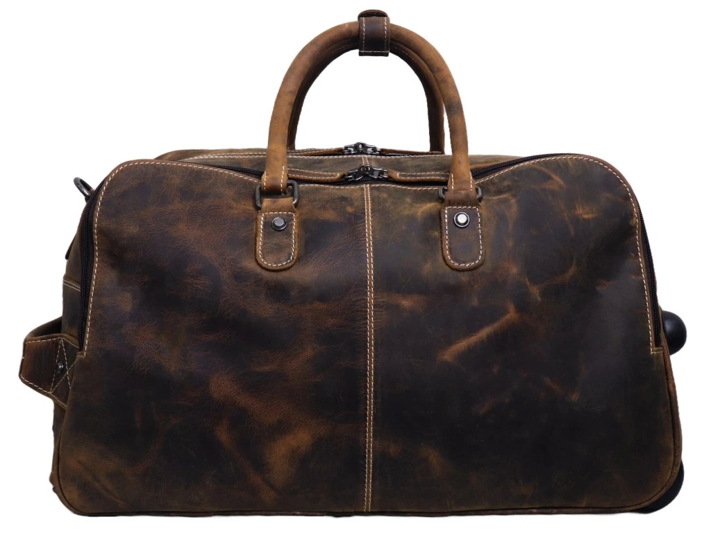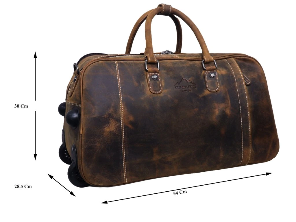 Tato kožená cestovní taška na kolečkách je ideální volbou pro pohodlné a stylové cestování. Díky praktickému designu ji využijete jako příruční zavazadlo do letadla, ale i na víkendové pobyty či pracovní cesty.